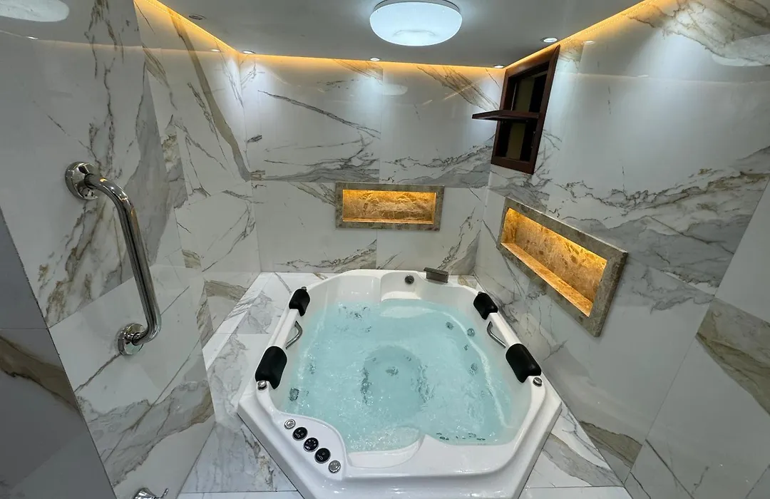 The accommodation provides guests with an adjoining terrace, a balcony, and a dressing area, as well as such modern comforts as climate control. The apartment features a bathroom with hair dryers and towels. Furthermore, a bidet, a spa bathtub, and a roll-in shower is available.